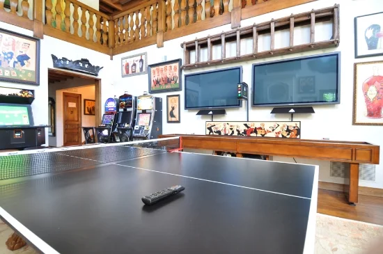 This house sets the bar by creating an environment where the kids can play and the adults can have fun, too. In this day where there are many options outside of the house, the Lucas family has created an awesome space for family entertainment and togetherness. Did I mention they have shuffleboard?